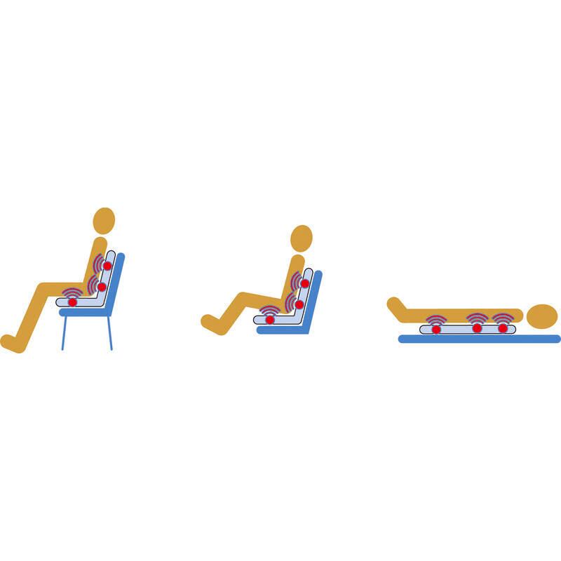 リビングの椅子やベッドがマッサージャーに早変わり。・背中・脚・太ももの各部を心地よくマッサージ。・オートオフタイマーを内蔵。・折り畳んで収納OK。 ・楽々操作の手元スイッチ。・医療機器認証番号:220AGBZX00097000