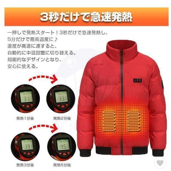 電熱ジャケット 長袖 電熱ベスト 繊維ヒーター 7箇所発熱 USB充電式 暖房服 防寒 ヒーター付き防寒着