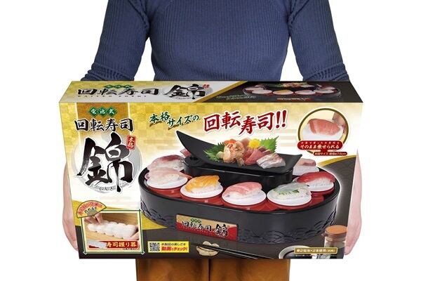 お家で楽しめる回転寿司器が登場! 好きなお寿司を乗せてワンボタンで流して美味しく楽しめます。