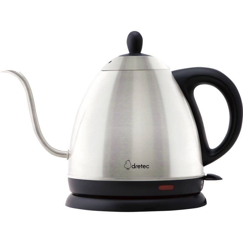 注ぎ口の断面が広いので湯量が見やすく調節しやすい・湯量が調節しやすい細口タイプ・スイッチ一つでお湯が沸く・電源ONでランプが点灯・空焚き防止機能付