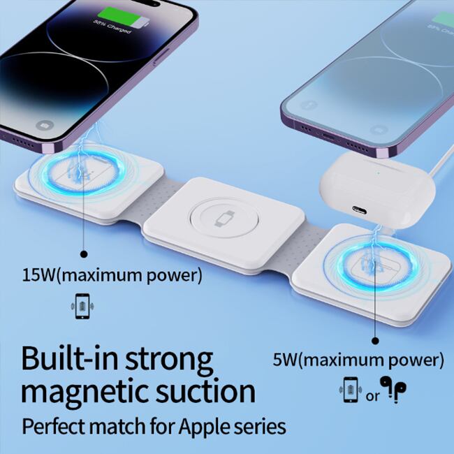 ・3台のデバイスが同時に充電できるワイヤレス充電スタンドです。